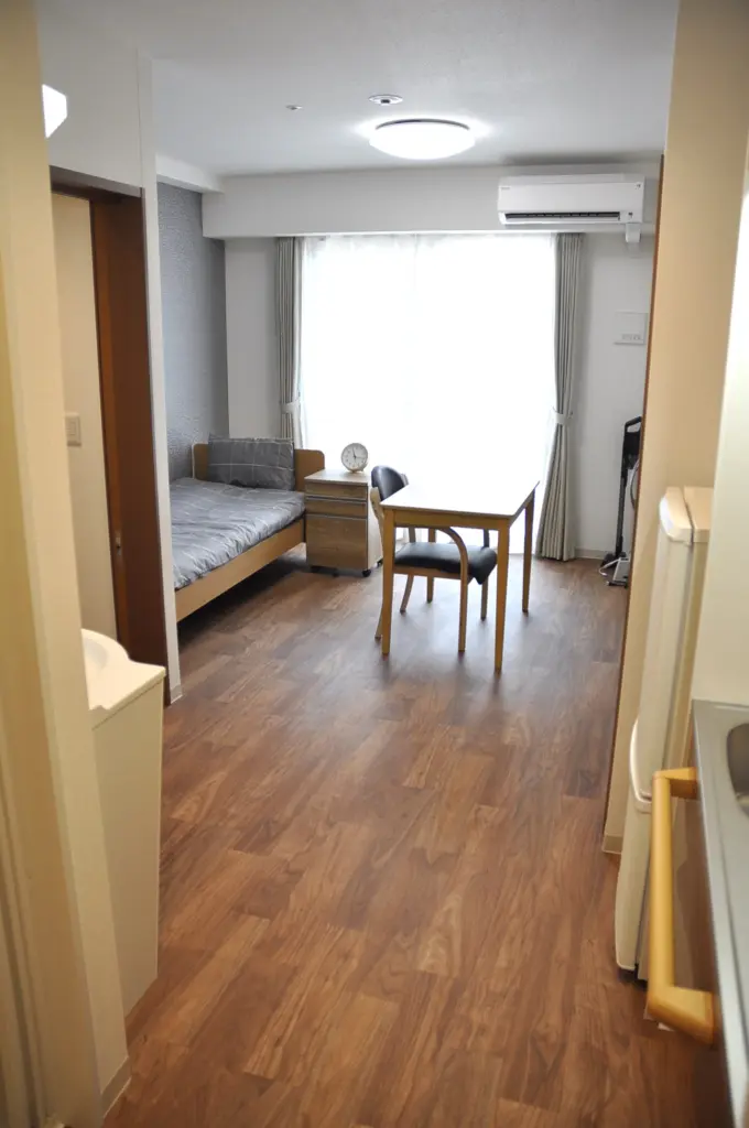 新施設は鉄骨造3階建てで、総戸数は68戸。各居室には浴室、洗面台、キッチン、収納スペース、エアコンを備え、無料のWi-Fiも利用できる。賃貸マンションのような自由度の高い住まいでありながら、24時間の緊急対応や安否確認など、高齢者の暮らしを支えるサービスが付帯する。