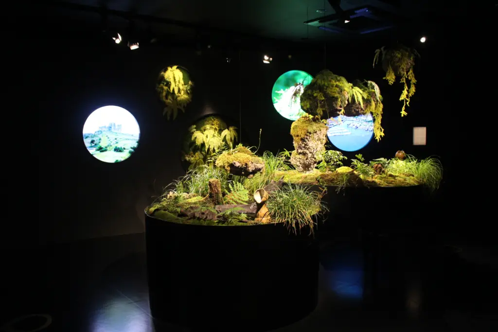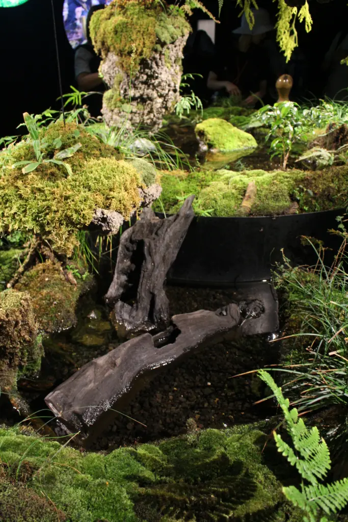 館内は3つの部屋に別れていて、テーマが「創造力が人と人をつなぐ」。最初の部屋では、アイルランドの典型的なランドスケープの泥炭湿地帯が再現されている。ただ日本の庭師ともコラボレーションしているので日本庭園の要素も多少は含まれている可能性がある。よく見ると苔や作りなど日本の庭に通じるものが感じられる。