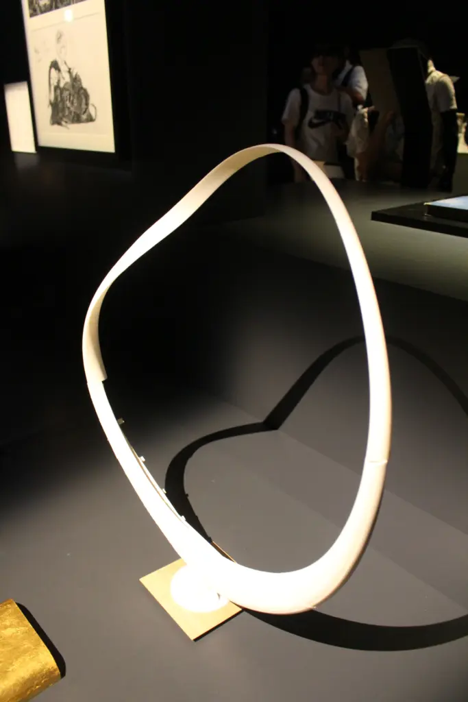 パビリオンの外に展示されている金色のオブジェは「Magnus RINN」という名前の作品で、ジョセフ・ウォルシュという家具職人が製作したもので、この構造や内容を紹介する展示があった。