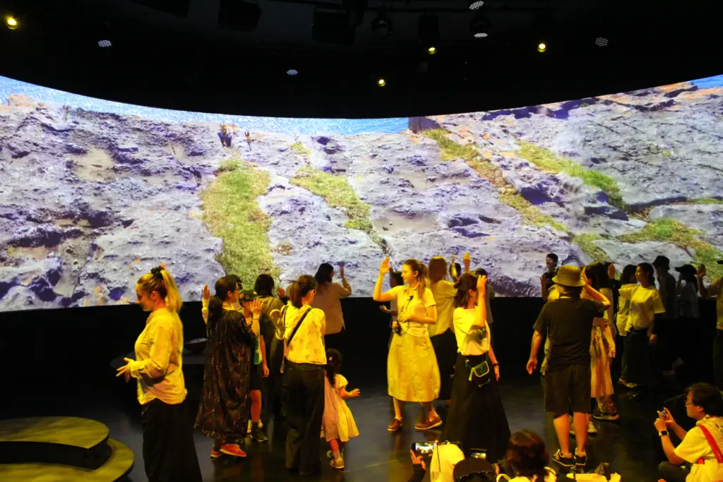 そして最後の部屋ではライブパフォーマンスが行われ、それを鑑賞するが、途中でパフォーマーと一緒に踊ることもでき、音楽に合わせて展開される映像とシンクロしていて完全没入型の体験が用意されている。