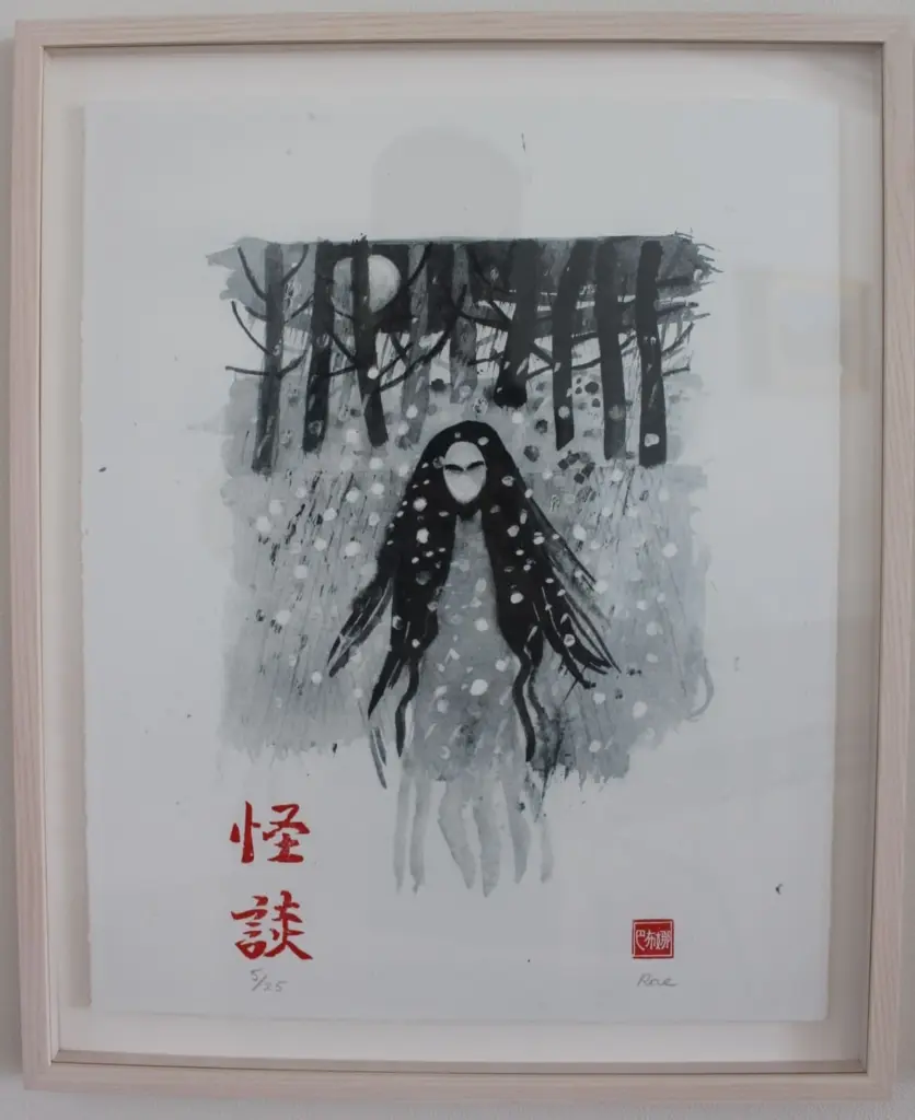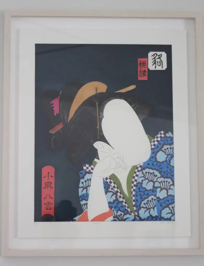 また、今回は特別に2階にあるミーティングルームを見せてもらったが、そこには怪談(KWAIDAN)という図録と両国のアーティストが描いた40作の怪談を現した絵が壁に掲げられていた。