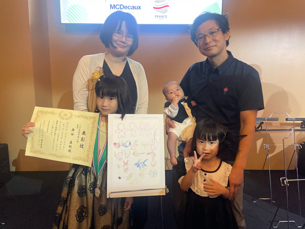低学年の部金賞を受賞した奥谷真帆さん(下段左)と家族