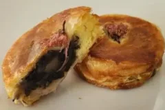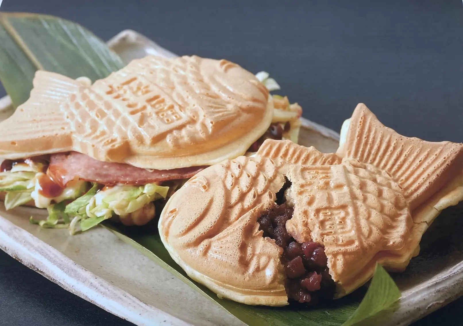 鯛焼きといえば「つぶあん」が定番だが、近ごろ注目を集めているのは〝お好み鯛焼き〟だ。卵をふんだんに使用した蜂蜜入りのふんわり生地で、ベーコンやキャベツ、紅しょうがなどを包み、まるでおやつ感覚でお好み焼きを味わえる新しいスタイルの一品である。