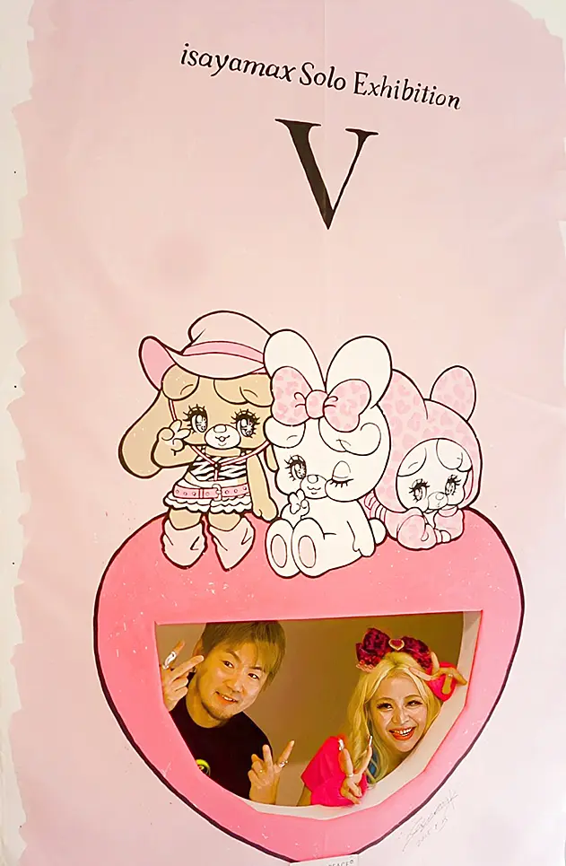 昭和・平成のカワイイ漫画やアニメをモチーフにしたアート展「isayamax Solo Exhibition『V』」が開催中の大阪ミナミの画廊「LAUGH&PEACE ART」をギャル芸人「エルフ」荒川(28)が訪れ、作者のisayamaxと交歓。