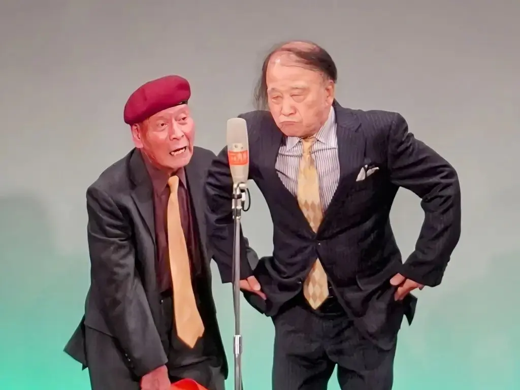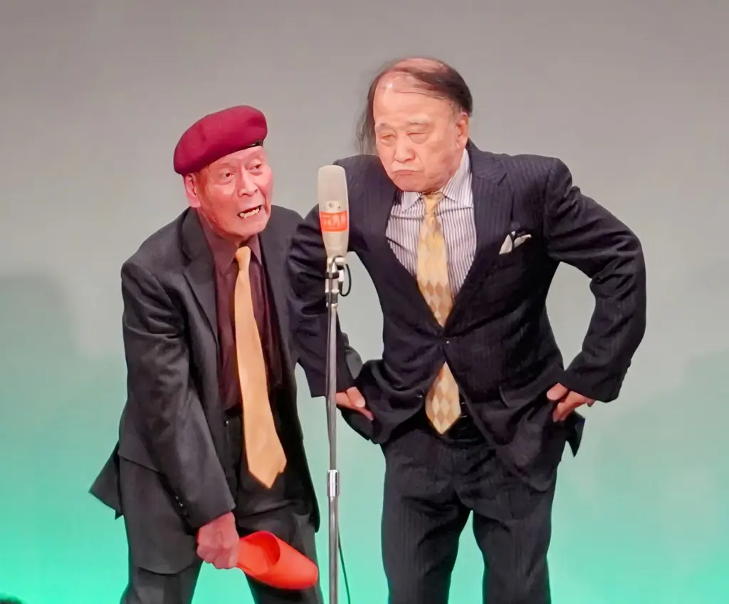 東京進出のきっかけを作った「よゐこ」有野は元気な先輩コンビを横目に「55周年と言わず60周年まで毎年やったら?」と提案。はるかは「確かに次は60周年ですけど、ちゃんと立って漫才できればエェ。後は1年ずつ2人一緒に元気で頑張ります」と喜びを語った。