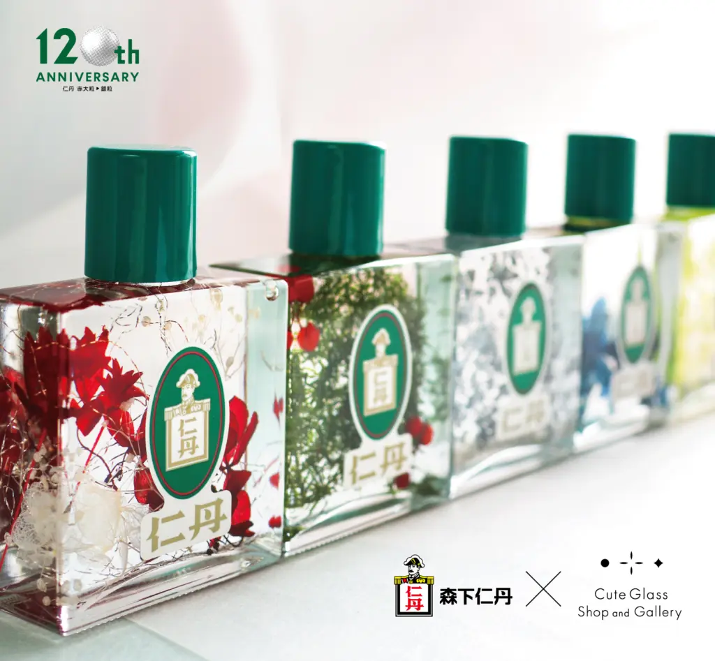 こうした中、仁丹シリーズ発売から120周年を迎えた森下仁丹(大阪市)は、その節目を記念し、長年この瓶を製造してきた老舗ガラス瓶メーカ・日本精工硝子とコラボした展示とワークショップを企画。会場となるのは、日本精工硝子の直営ショップ「CuteGlass Shop and Gallery」。香りと彩りをテーマにした期間限定イベントが9月30日まで開催されている。