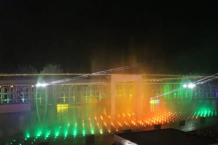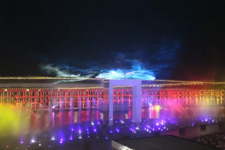 そして、締めは、チェコパビリオンのルーフトップから見る「アオと夜の虹のパレード」。これまで正面や大屋根リングの上からなど何度か位置を変えて鑑賞したことのあるこのウォーターショーだが、チェコパビリオンのルーフトップからの眺めは最高だった!