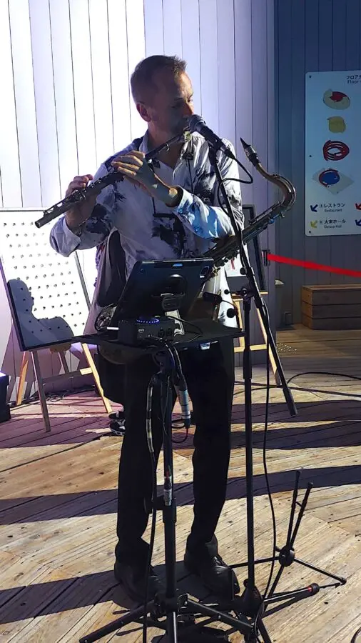 また、このウォーターショーの前にはサックスフォンとフルートを使いこなす男性ミュージシャンの演奏もあった。