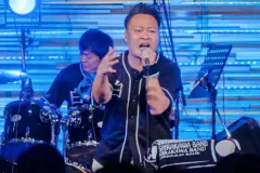 猛暑日の大阪での生歌に、いつものダジャレは封印して切ない詞の内容に合わせてトークも真面目に。「自分の故郷ですけど大阪は暑いね。湿気が多い感じ、仕事で香港に行った時の事を思い出しましたよ。あちらもジトッとまとわりつく暑さ。大阪も香港化して来たのかな?」とサラリ。それでも生まれ故郷は落ち着くようで「大阪の街の雑多さが好き。僕は逆に落ち着きます。今日いらしているお客さまには、この街を長く愛して欲しい」とエールを贈った。