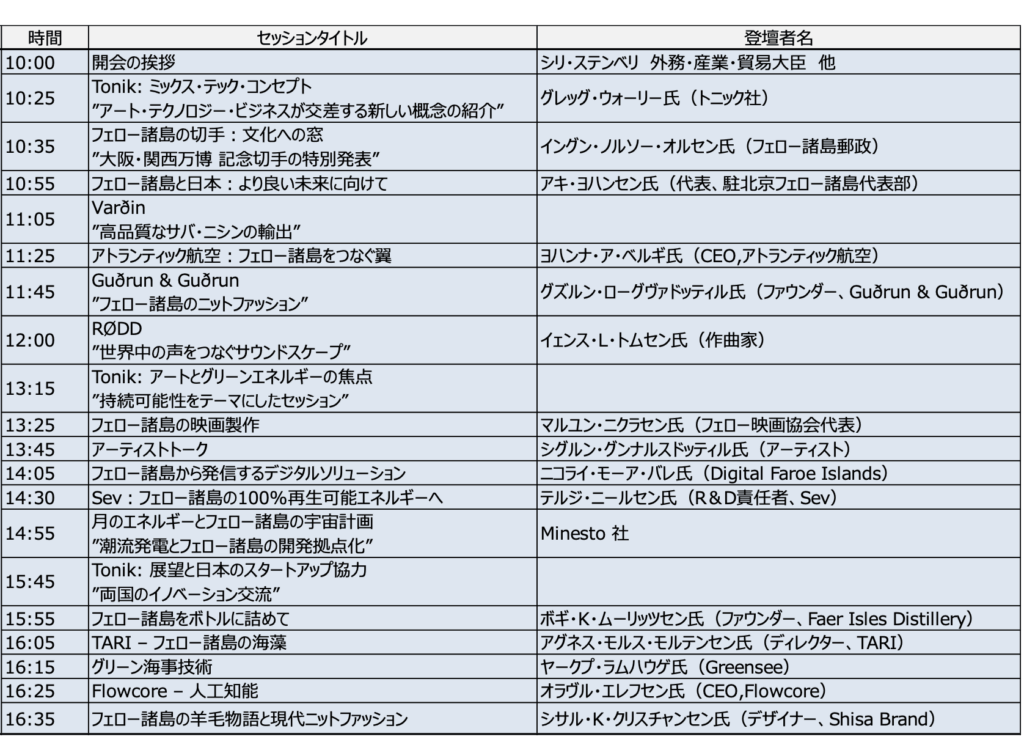 フェロー諸島を外交・文化・産業・サステナビリティの切り口から包括的に紹介する特別イベントで、シリ・ステンベリ外務・産業・貿易大臣が就任後初来日し、開幕スピーチを行う。他にもデザイナーやビジュアルアーティスト、ファッションビジネスの起業家などもスピーチを行う予定だ。