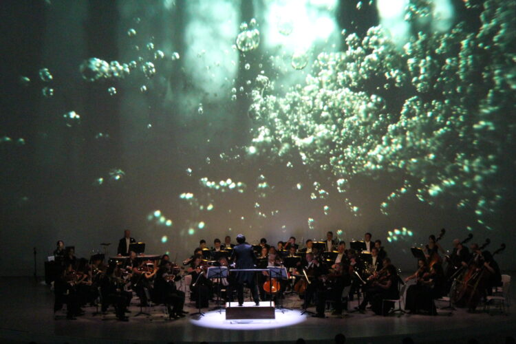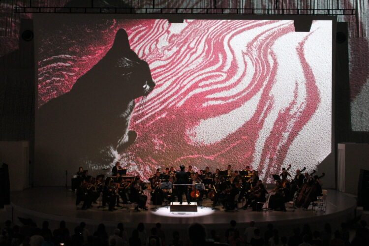 この日はnull²(ヌルヌル)のプロデューサーの落合陽一さんとのコラボパフォーマンスでもあったので、前半はメディアアーティストの落合さんのデジタルミュージックとnull²(ヌルヌル)の中で見せるデジタルアート映像とを融合させた近未来的なパフォーマンスがあり、後半にピルゼンフィルハーモニー管弦楽団の演奏があった。