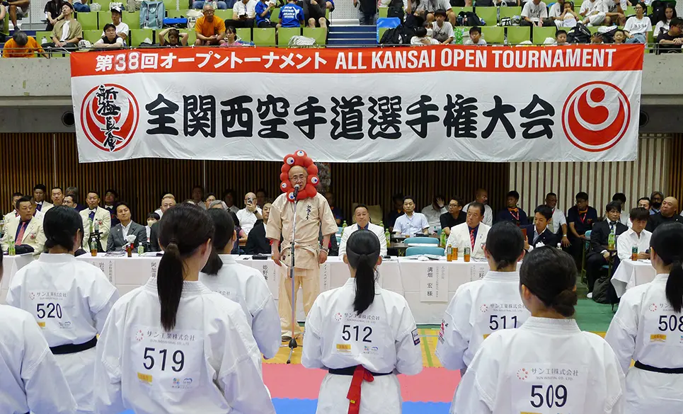 日本こども支援協会チャリティ「大阪府知事杯 第38回オープントーナメント全関西空手道選手権大会」が9月7日、大阪・門真市の東和薬品RACTABドームで開催され、全国から男女1000人以上の選手が集結。フルコンタクトによる迫力ある試合が繰り広げられた。主催は新極真会大阪東部支部(阪本晋治支部長)。