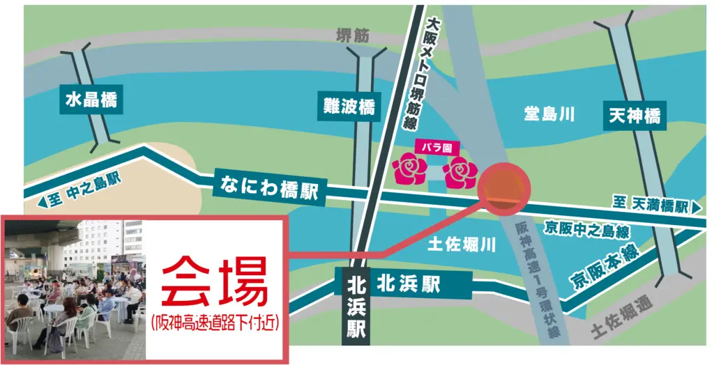 当日、3店舗以上で買い物をすると、ホテルニューオータニ大阪(中央区城見1)やvoco 大阪セントラル(西区京町堀1)など有名ホテルの食事券の他、大阪水上バス アクアライナー(中央区大阪城2)の乗船券、キッズプラザ大阪(北区扇町2)の子ども招待券など豪華プレゼントが当たる抽選会に参加できる。時間は午前11時~午後6時。入場無料。小雨決行、荒天中止。