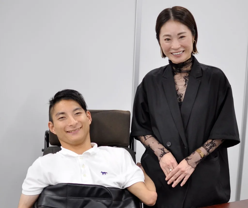 この母子は一般社団法人HI FIVE(ハイファイブ)の共同代表の畠山織恵さん(西淀川区)と重度脳性麻痺の長男亮夏さん(同)。亮夏さんは高校在学中、自分自身の体験を元に「生きる教科書プロジェクト=イキプロ。」を考案し、2018年6月に「親も子も障害にとらわれない自分らしく生きる人生」を目指して同法人を設立。現在は企業での研修、大学及び専門学校での講師業と並行し、普段の生活や試行錯誤する様子をありのままにYou Tubeで発信している。亮夏さんは「研修では上手にやらなければならないと不安に思うかもしれませんが、僕でたくさん失敗してもらえれば。少しでもコミュニケーションのハードルを下げたい」と話している。