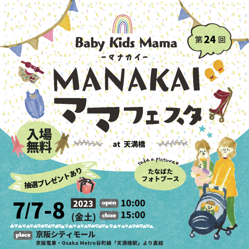 育児を頑張るファミリー同士が交流し、リフレッシュできるイベント「マナカイママフェスタ」が7月7日、8日に京阪シティモール(天満橋)で開催される。