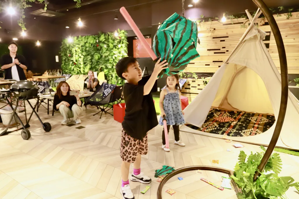 店内でありながら、まるでアウトドアキャンプのような空間でBBQが楽しめる店舗「WOOD DESIGN PARK天神橋店」(旧 NIKKA BLOCK PARK 天神橋店)はこの夏、「ちびっ子ピニャータ祭り」を開催する。