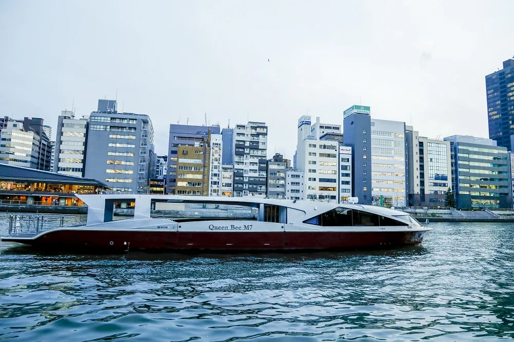 最新鋭EV旅客船「Queen Bee M7(クイーンビーエムセブン)」がこのほど、京阪天満橋駅すぐの八軒家浜船着場から大川での運航を開始した。