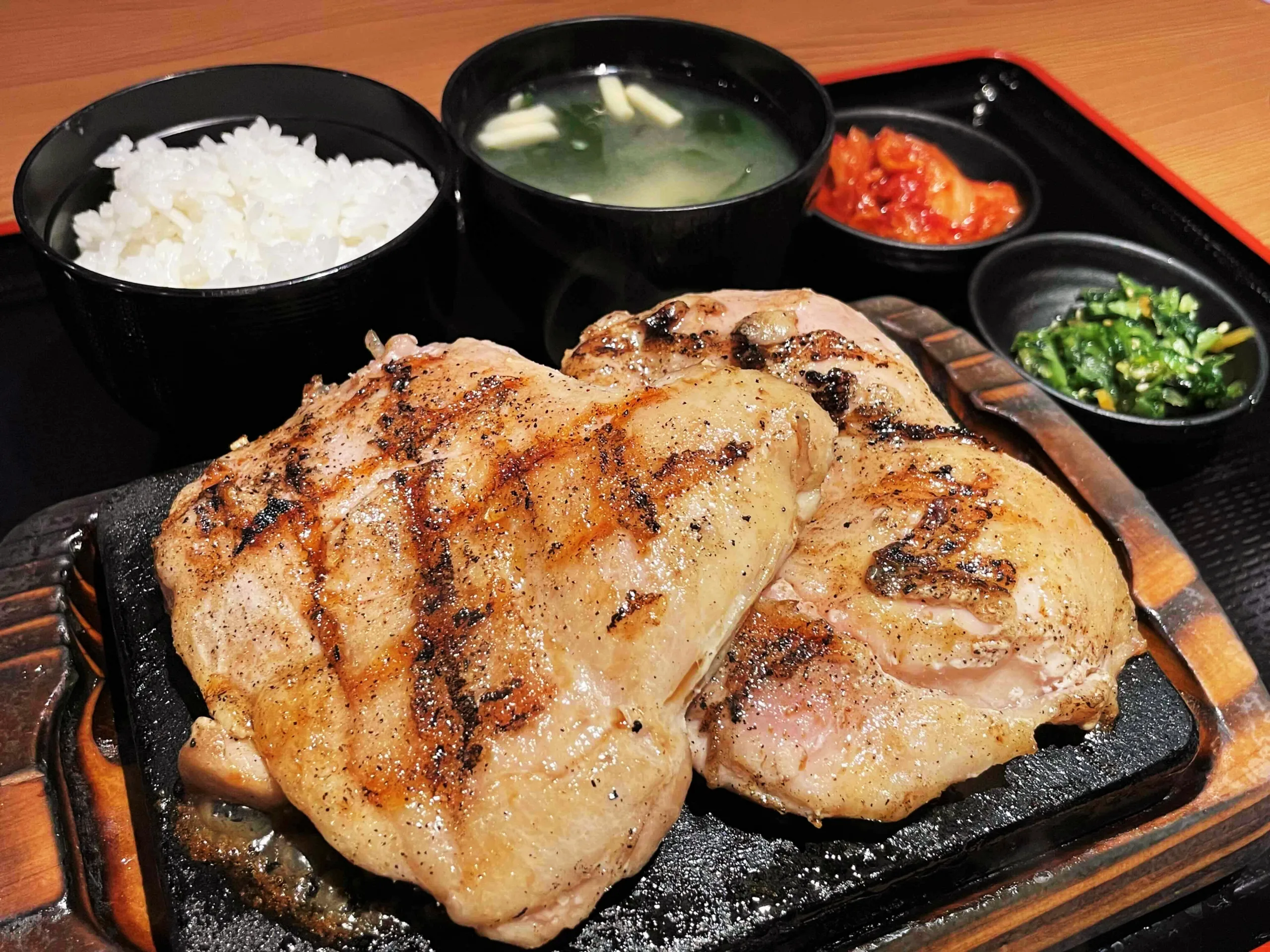 蒲生四丁目で噂になっている店がある。ボリューム満点のステーキ肉が激安で食べられる「ワンダーステーキ」だ。例えば人気のWチキンステーキセットを注文すると、アツアツの溶岩プレートの上でパチパチと音を弾かせた大きなチキンステーキが2枚ものって提供される。焼き加減はお好みで食べられる。筆者は皮をカリカリにして塩をつけて味わってみた。ご飯と味噌汁は、お代わり自由で1,100円(税込)。ビーフハラミステーキも評判で、昼も夜も同価格だ。なるほど、巷で噂になるのもうなずける。