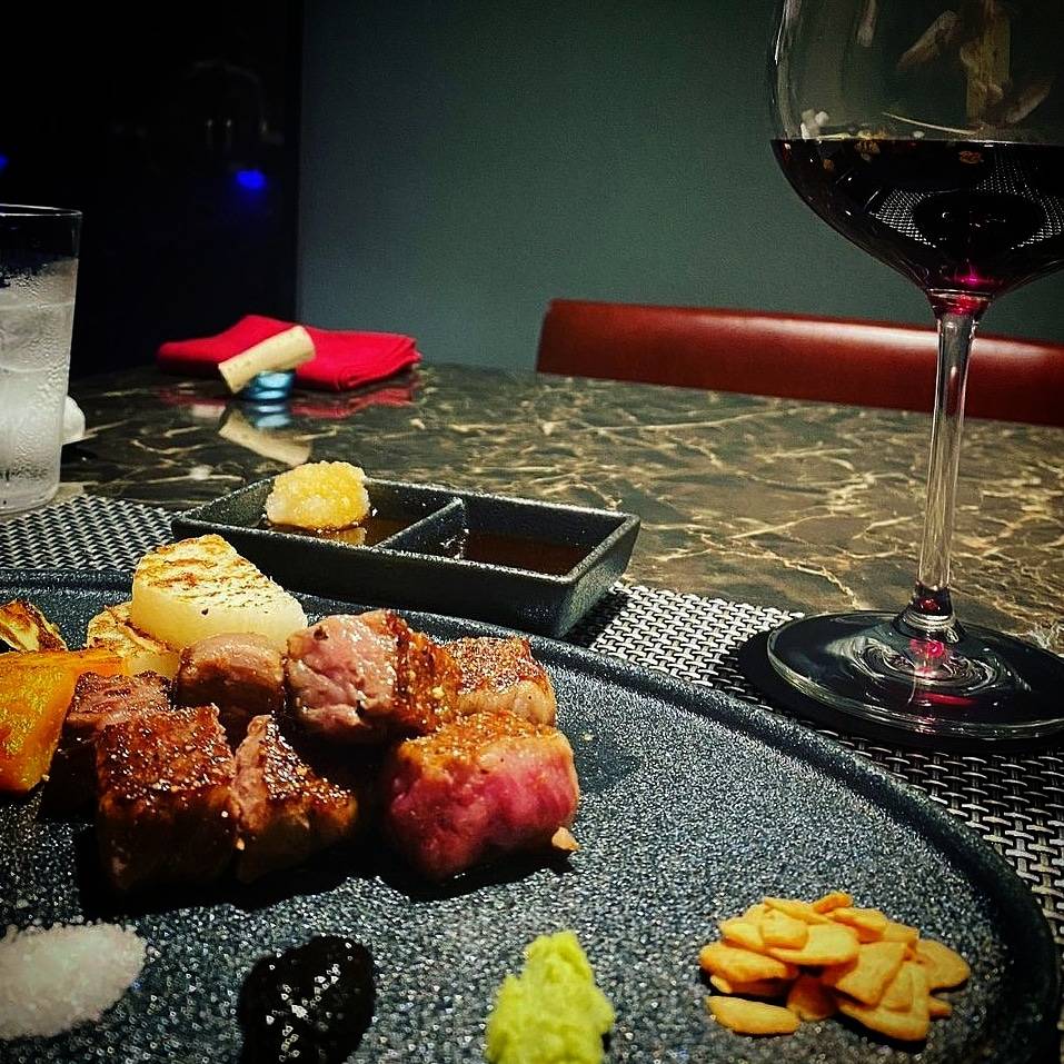 ステーキハウス「信」大阪・心斎橋店は、大人が楽しめる落ち着いた雰囲気の隠れ家的なレストラン。カウンター6席と4人掛けテーブル2卓の店内で、料理長自らの鉄板さばきなど「視覚、聴覚、嗅覚」で楽しむことができる。