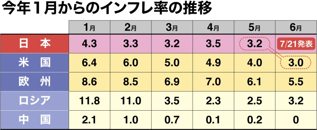 世界各国のインフレが収まるころ、日本だけがインフレに悩まされる日がくるのか? これまでの日本のインフレ率を見ると、ことし1月にピークとなる4・3%になったが、2月~6月の間は3%前半を行き来している状態だ。