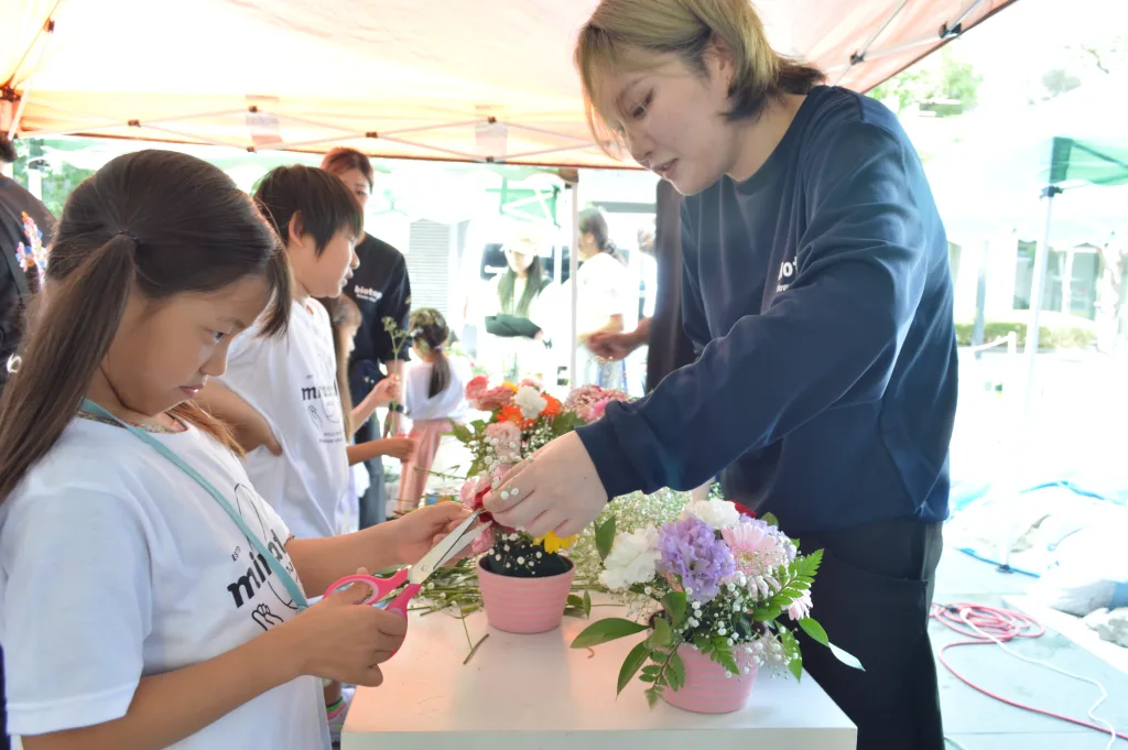 7月2日には子ども向け職業体験イベントの第1弾として「フラワーショップ体験」を開催した。植木鉢を作り、それを商店街で一般販売するところまで体験。仕事の仕組みや大変さを身を持って体験できるプログラムとなった。