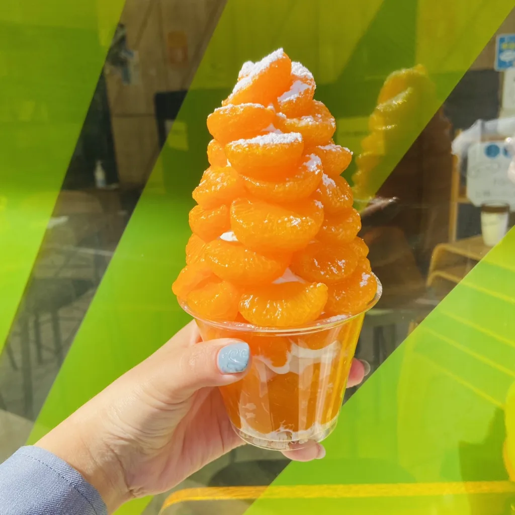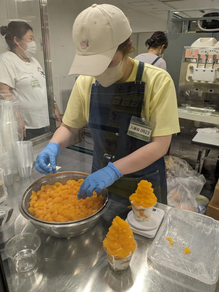 今回は、焙煎温度を0度、100度、130度、160度から選び、異なる味わいが楽しめる静岡県のお茶ジェラート「焙煎温度別ティジェラート」(ダブル1000円)や、瓶のなかに半解凍したプリンとソフトクリームを入れ、コーンの帽子をかぶせた伊勢神宮で人気の「冷凍プリンソフト」(690円)などが初登場していて注目を集めている。昨年開催時に行列ができた兵庫県の「みかんボンボン」(880円)は、こぼれおちそうなフルーツがソフトクリームに積まれいて、来場者も「見た目にも感動です」と話していた。普段は現地でしか味わえないメニューが実演販売されるのも人気だ。