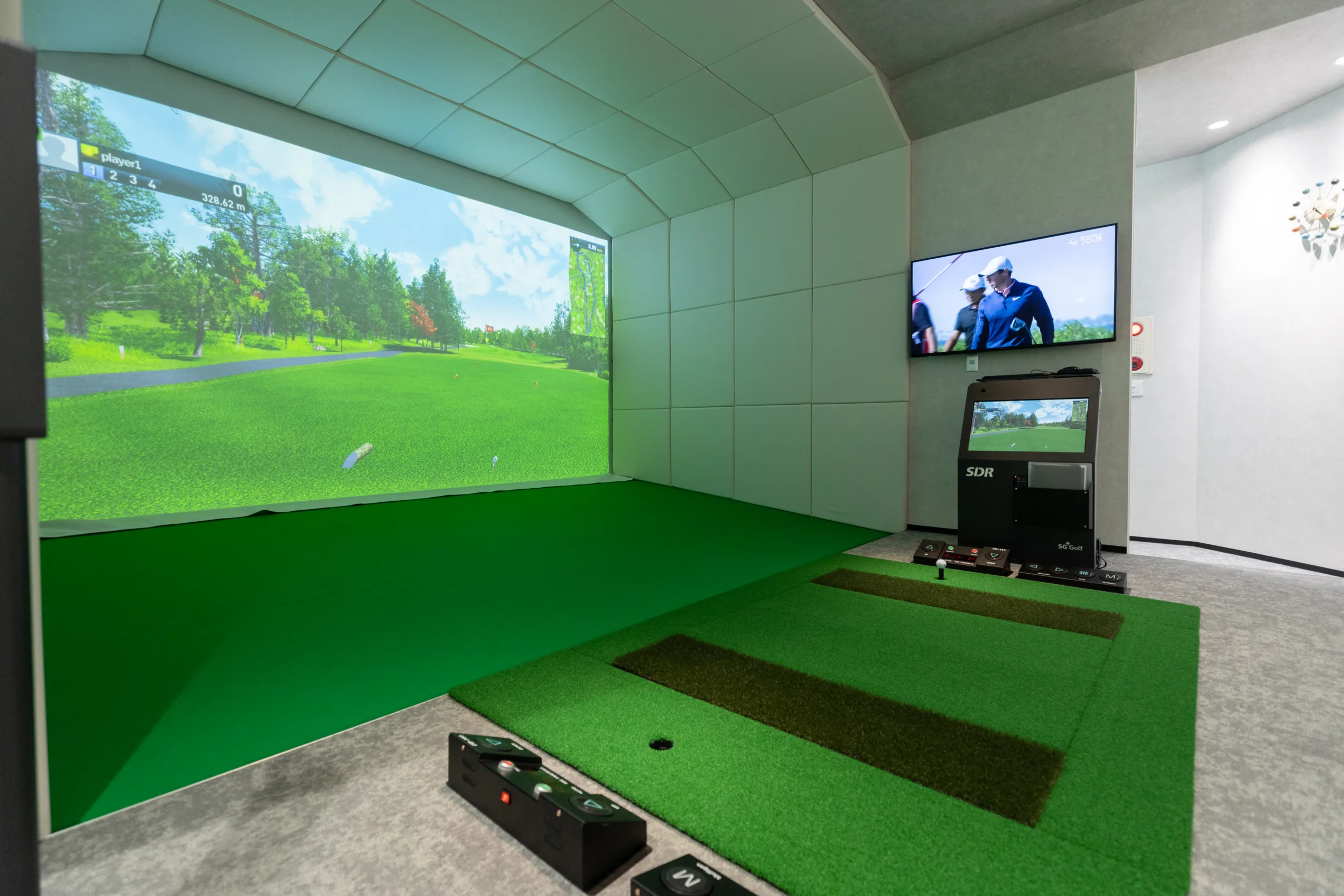 さらに今ゴルフ愛好者たちを沸かせているのが、「SDRアプリ」の誕生だ。このアプリは店舗に設置されている「SDR Golf Simulator」と連動しており、練習モードやラウンドモードで実際に自分がプレイしたデータが、アプリを通していつでも見られるようになった。ラウンドを回った際の平均飛距離・最長飛距離・フェアウェイキープ率・パーオン率などのショット分析を図解で解析してくれて、スイングの動画もスマホのカメラフォルダに保存可能。さらなる「見える化」によって前回のスコアとも比較しやすく、より一層ゴルフ上達を目指せると会員からは喜びの声が上がっている。会員1人につき1人の同伴OK。プランによっては2人以上の同伴も可能だ。