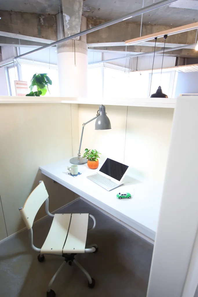 共有空間では、広いスペースでの作業が必要なときや、社外の人と交流したいとき、食事などでも自由に使用可能だ。個人ブースもあり、周りの視線を気にすることなく集中でき、さまざまな状況に合わせて使い分けができる。