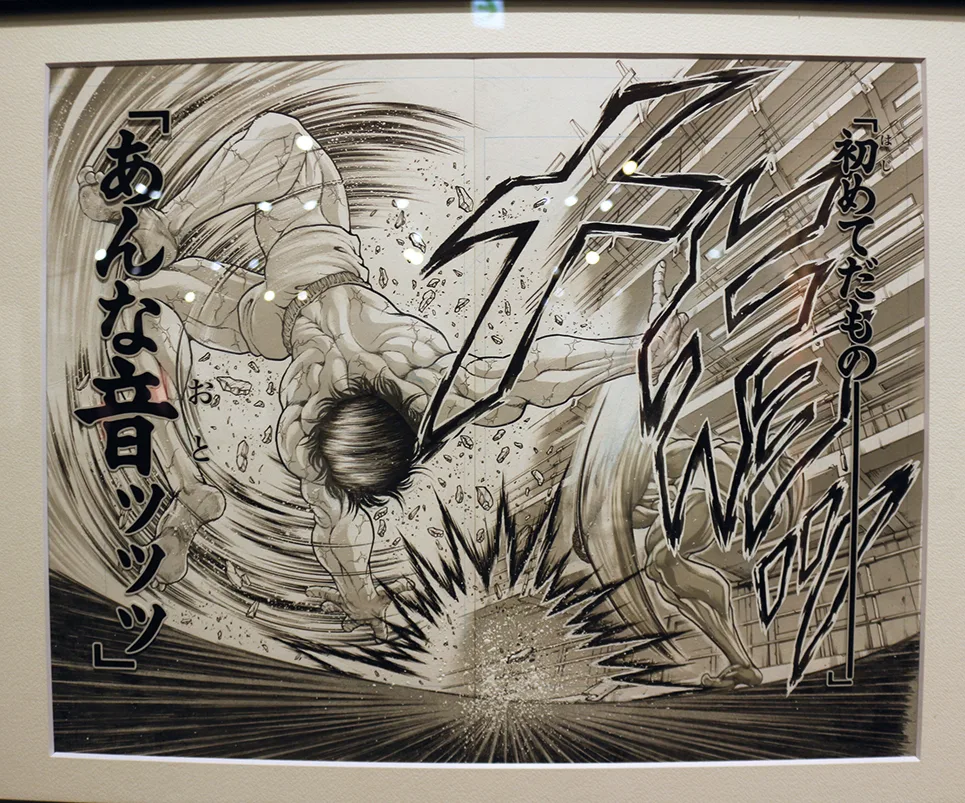 累計発行部数8500万部を誇る、週刊少年チャンピオン(秋田書店)に連載中の格闘マンガ「刃牙(ばき)」シリーズ。連載30周年を記念し、数々の名勝負を原画で振り返る「地上最強刃牙展ッ! in 大阪」が9月7日、大丸梅田店15階の大丸ミュージアムではじまった。期間は9月25日まで。
