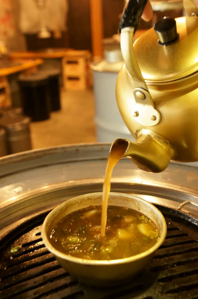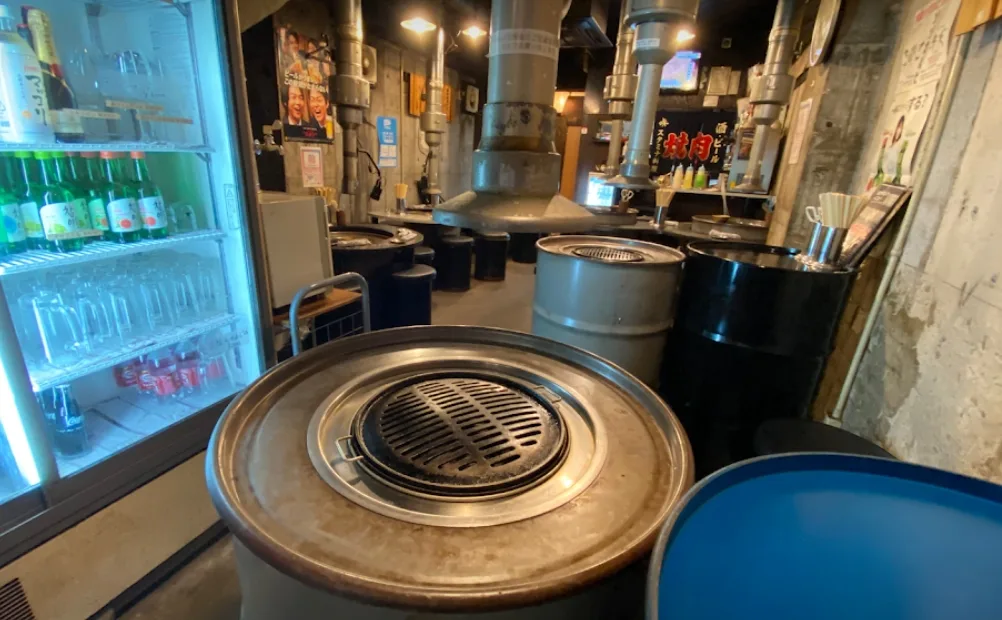 同店は珍しいオリジナルドラム缶焼肉ロースターで、鉄板の上にあるアツアツの秘伝のタレをつけて食べる独特のスタイルで創業当時からファンが多い。