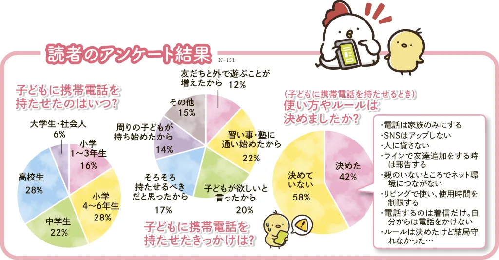 スマホを持つメリットは理解しても、子どもに渡すのはまだ早い!と思っている保護者は多いですよね。でも、子どもの学年が上がるにつれてスマホを持つ友だちが増え、子ども自身も興味を持ち始めると、そろそろ準備が必要かな?という気持ちに。スマホへのモヤモヤを解消すべく、使い方のルールや備えておきたいトラブルなど、いろんな方から意見を集めました!