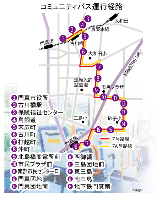 門真市が2011年から、市内公共交通不便地区の解消のため市役所から地下鉄「門真南」駅まで運行補助を行う京阪バス7・7A号系路「コミュニティバス」(運賃一律= 大人230円、小人120円)が、3月31日で路線廃止されることが決まった。
