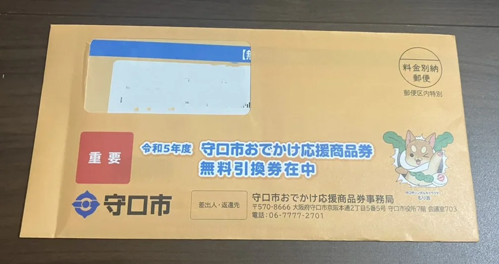 市民全世帯対象「守口市おでかけ応援商品券引換券」配布開始