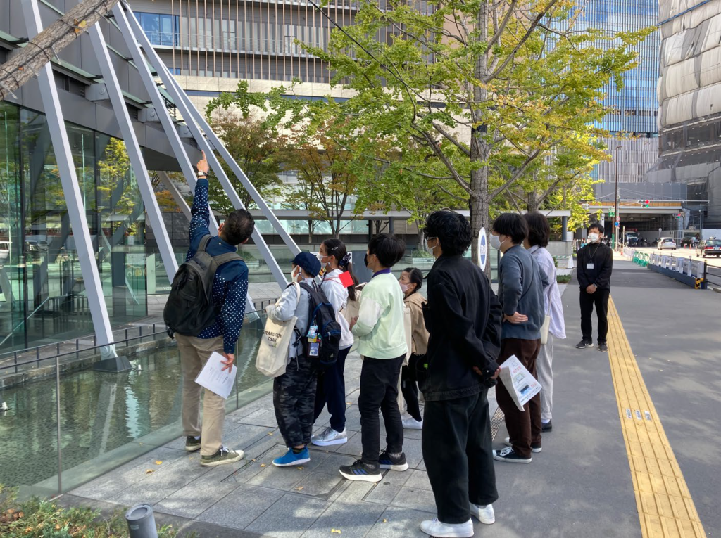 講師に建築史家の倉方俊輔氏(大阪公立大学大学院工学研究科教授)を招き、建築の見方について、小学生向けにやさしい内容で講演。その後、大阪公立大学の学生と児童がグループになり、実際にグランフロント大阪の建築を見て、建築から「みつける」ワークショップを行う。そして、一人一人が「みつけた」ことの発表会を実施する。