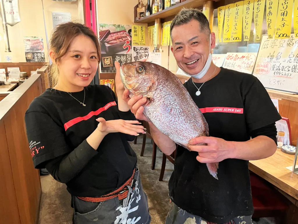 大阪メトロ・鶴見緑地線「今福鶴見駅」から歩いて5分ほどの場所で賑わいを見せる居酒屋「今福近江屋」。その秘密は、店頭に貼り出された大きな看板にある海鮮丼、あなご天丼、お造り定食、焼き魚定食など、多くのランチメニューが1000円以下で並んでいるのだ。