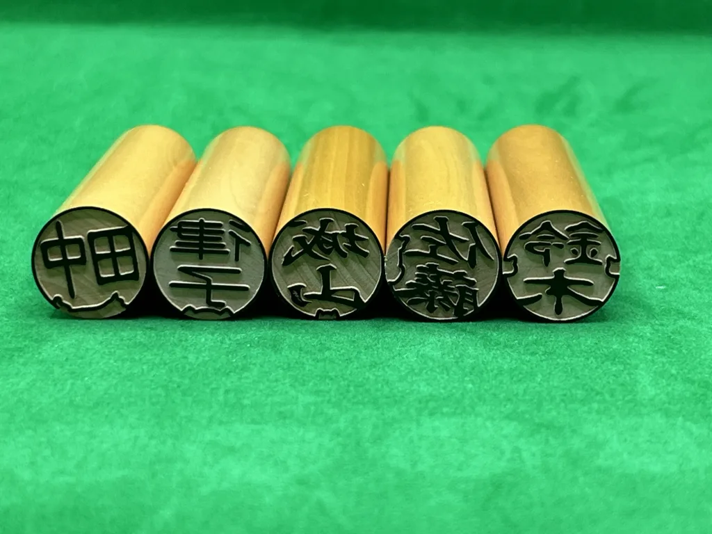 大阪市此花区にある「城山博文堂」は、動植物や似顔絵、家紋など、文字の一部を変形したデザイナーズ印鑑を販売している。