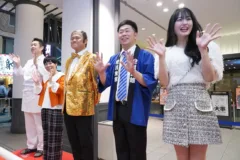 記念グッズは、役どころの真っ赤なスーツをモチーフにしたチンピラルックTシャツで価格は何と1枚5千円。「最初で最後かも知れんから50枚限定で作ったんやけど、枚数少ないから高額に…買うて下さい」と、いつもの強気はどこへやら。