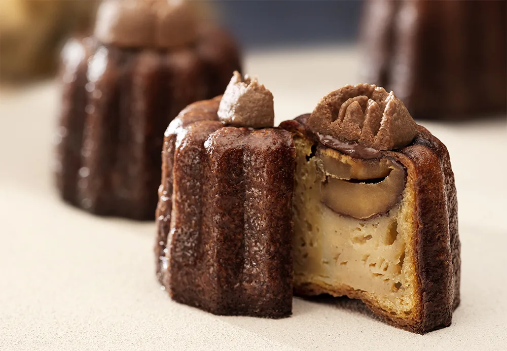 一粒栗がまるごと入った秋にぴったりの新作で、風味豊かなヨーロッパ産のマロンペーストに、ブルボンバニラとカヌレの聖地・ボルドーで熟成されたネグリタラムが香る。