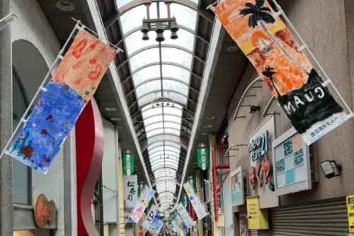 地域 夢中で描いた子どもの〝のぼりアート〟 寝屋川「ベル大利商店街」に50点、買い物客を魅了